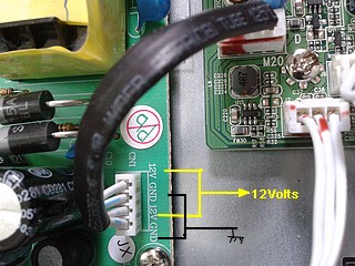 Alimentationen cas de panne de l'alimentation une alimentation extérieure de 12v 4A sera plus que suffisante elle sera directement soudée sur les fils du connecteur D.le repérage de la tension est inscrite côté connecteur carte alim (les deux 12 v sont relies ensembles) Mieux vaut plus que moins dans l'ampérage(en principe une de 2A sera bon mais par expérience sur les alim "made in china" je préconise du 2.5A à 4A)