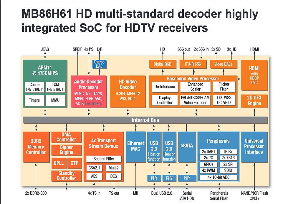 Mémoire déssoudée.. c'est sure que l'on va pas nous montrer a quoi sert le connecteur con1 ,mais j'ai une petite idéeFichier.bin total lu sur la mémoire pour amazonas & Star one & Canalsatantilles patchtotalamazonas.binCI : M88DS3103 - Advanced DVB-S2/S Demodulator (M Montage technology) Multi-standard demodulation Compliant with DVB-S2/S specifications QPSK, 8PSK, 16APSK and 32APSK demodulation schemes Maximum channel bit rate: 168 Mbps Maximum symbol rates: 45 Msps for QPSK, 8PSK and 16APSK; 37 Msps for 32APSK DSP features Symbol rate sweeping I/Q impairment cancellation Automatic spectrum inversion Adaptive equalizer for RF reflection removalMicropocesseur : Roll-off factor automatic identification Fast blind scan High performance on-chip micro-controller Multi-error monitor Accurate SNR estimation Multi-lock indicators Clipping rate reporter DC removal Automatic frequency correction Fast timing loop acquisition Robust frame synchronization scheme Phase noise indicator Fast system recovery from fading or other abnormal conditions Co-channel interference cancellation PID filter Interface DVB-S2/S common, parallel and serial MPEG output interfaces compliant Serial 2-wire bus to configure the device 2-wire bus repeater for tuner configuration FSK interface DiSEqC™ 2.X compliant interface, DiSEqC™ envelop mode General purpose input/output (GPIO) Dedicated reference clock generation System On-chip 8-bit ADC On-chip PLL for system clock generation from an external 4/8/10/16/27 MHz clock or quartz crystal Sleep mode supported Technology Power supplies: 1.2 V and 3.3 V MB86H61 Fujitsu 32 bitQuelque Notes & Sources(Kyng) *Cacher votre Cccam par 555 et visible par 8888 *notes sur la bannière (année 2015): https://kyngmania.wordpress.com/category/hd200s-tutos/ *bug en cas du dongle interne en tuner error : menu --> réinialisation --->1234 ---->réinitaliser les sats ,TPs et chaines