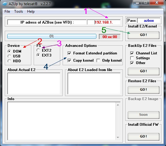 Nota : Pour introduire l'Image d'OpenAtv, il faut sur l'Azup se mettre en mode FS EXT2