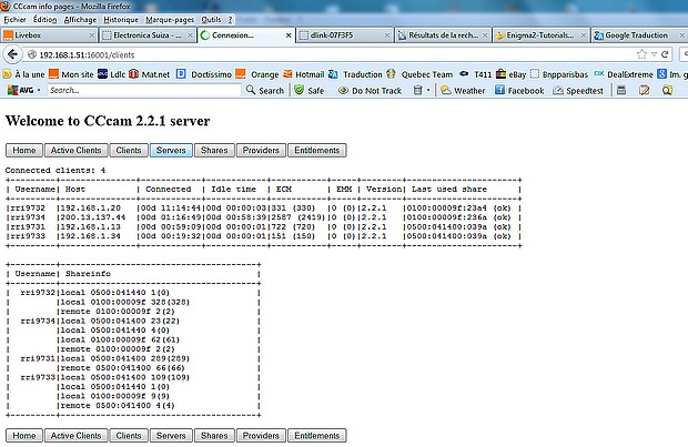 image en dessous : on peut visualiser le nombre de clients ou amis qui se connectent à la Dream qui est en "mode serveur CCcam"