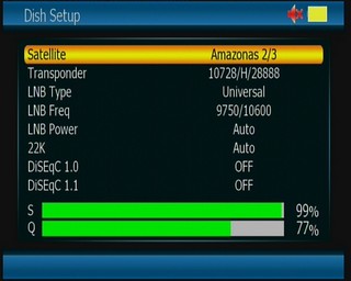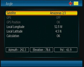 Puis changer "E" en "W" pour le position du sat dans le menu"Installation" Satellite Setup