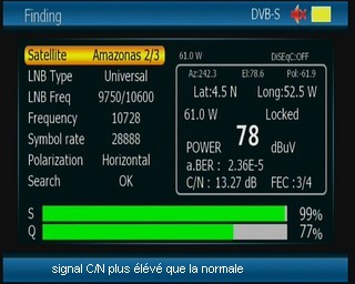 et comme souvent pour les Clones :le firmware a des défauts de conception :le niveau C/N a été suramplifié non conforme à la réalité des mesures