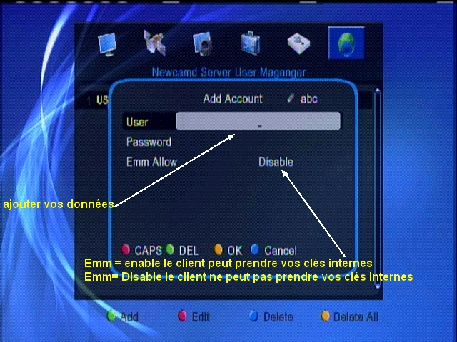 et le mode CCcam pour être en "mode client"