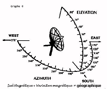 | -----Satellite---- | Long.sat | élévation | Azimut Ajouter Var.MG +16,5°W à azimut |