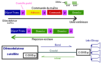 Le démodulateur possèdant le DISEqc ,sera le maître et l'unité extérieure l'escalve.
