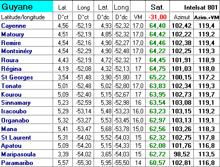 Azimut et Elevation pour Le Satellite I 801 :31°ouest de longitude