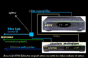 LT 8700 : receiver analogique Echostar (plusieurs possibilités de branchement à l'arrière de l'appareil)