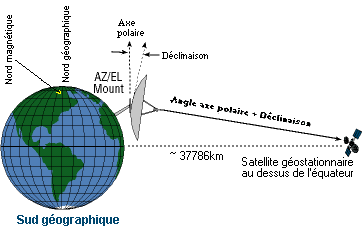 .Les sites situés au sud de l'équateur, les antennes s'alignent avec le Nord géographique.