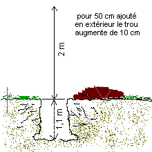 La largeur du trou de 2 à 4 fois le diamètre du tube.