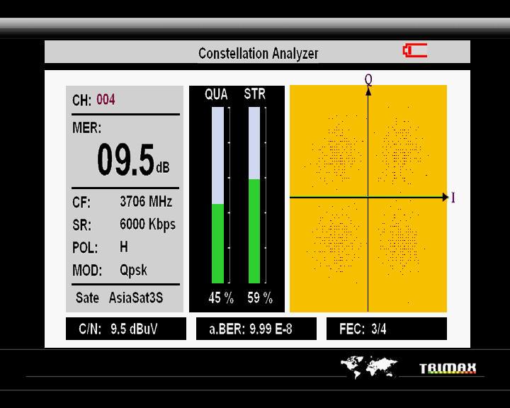 Sur les moyennes gammes de mesureurs ,on revient sur la fonction du sigal finder pour vérifier en mode "qualité et signal" que c'est le bon satellite recherché