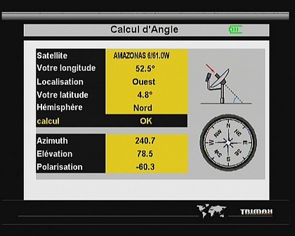 Ici l'azimuth est 240,7 l'élévation est 78.5 et la polarisation de la tête à -60,3°