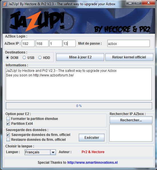 pour changer l'azbox en Egnima ou pour uploader la Firw officiel