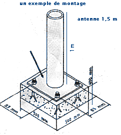 Au sol ,le mât sera maintenu par un socle de béton :mât de 1 m hors sol = 40 cm