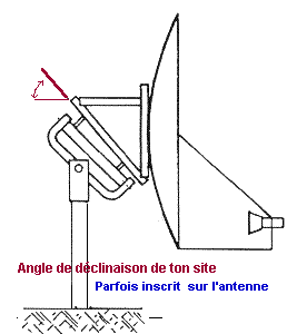 à l'aide de ton inclinomètre posé sur l'antenne pour voir l'angle d'élévation du satellite