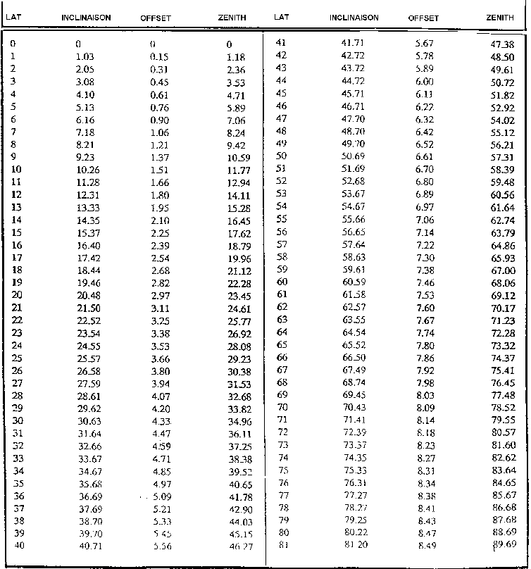 Réglage sat. à Midi : angle d'inclinaison.