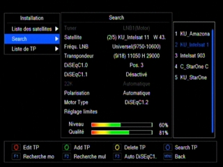 F1 :pour modifier selon vos choix les Lbns ,et commuateur DiSEqc 1.0 Etc